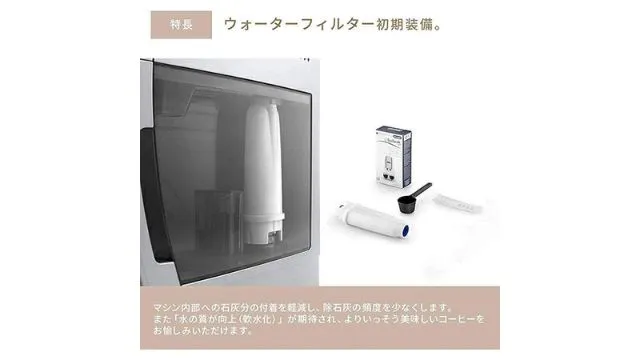 ウォーターフィルターがあることで、すっきりとした味わいでコーヒーが飲めます。